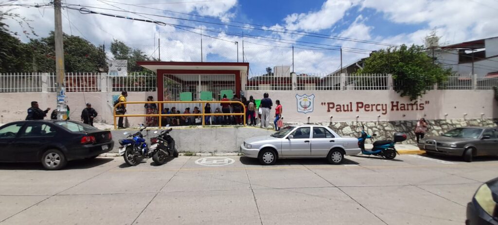 Padres de familia de la escuela primaria “Paul Percy” ubicada en Santa Rosa Panzacola, se manifiestan en la institución educativa para exigir la salida del director Miguel Ángel Pérez Pérez.