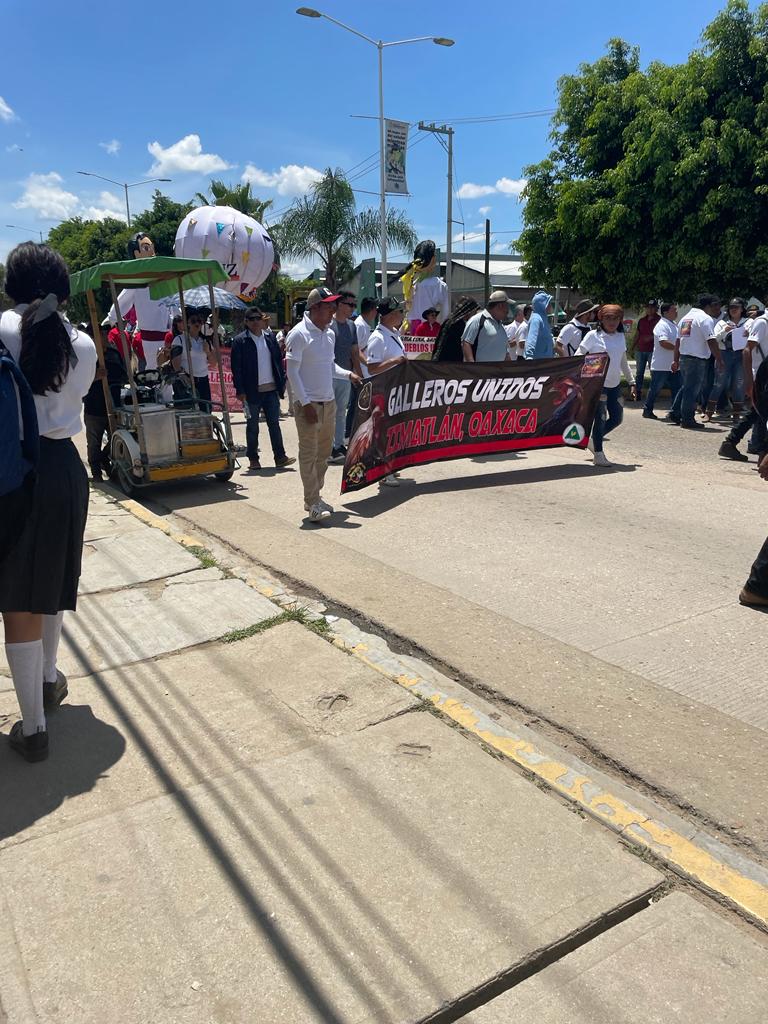 Integrantes de la Unión de Galleros, la Unión de Carrileros, la asociación de toros de reparo y gremios afines, realizan una marcha calenda en defensa de los empleos que generan estas actividades en la entidad oaxaqueña y que representan el sustento de muchas familias.